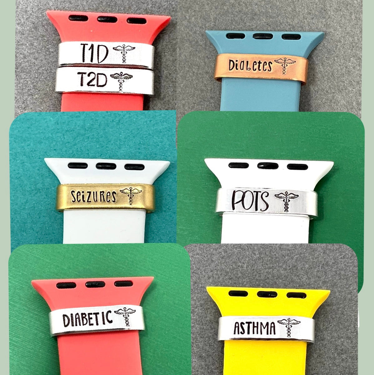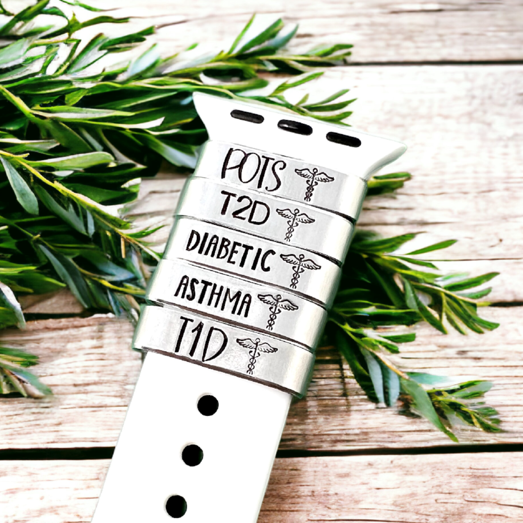 These medical alert watch charms are easy for medical personnel to spot in case of an emergency. They are hand stamped and can be personalized with your medical condition. These are great in lieu of a medical bracelet as these are already attached to something that you normally wear everyday so they will not be forgotten.